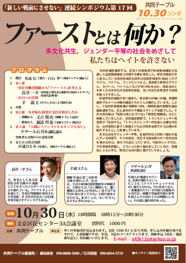 コーディネーター 前田朗(東京造形大学名誉教授)